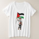 Pequeño niño lindo de Gaza, con un Keffiyeh, y sosteniendo la bandera palestina, símbolo de libertad e independencia de la Palestina libre. Ilustracion de arte gráfico vectorial original copyright BluedarkArt TheChameleonArt.