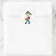 Un chico con una figura de palos con un pegatina de personalizable de la escuela de mochila.