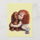 Niño de cabeza roja abrazando la postal de Dachshu
