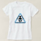 Camiseta de maternidad divertida, con un signo de precaución azul y blanco, con un ícono de bebé dentro. Texto gráfico negro alrededor del marco azul del cartel, dice ¡Bajo construcción y advertencia! Gran camisa casual para tu armario de maternidad.