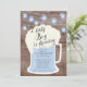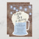 Diversión un bebé está preparando una ducha de bebé para parejas con una taza de cerveza llena de cerveza azul ambientada en un fondo rústico de madera con lámparas colgantes de tarro de masón