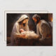 Tarjeta de saludo de vacaciones de navidades con una pintura de la escena de la Natividad con Mary, Joseph y el Niño Jesús. Personalizado en la parte posterior con su nombre. Comuníquese conmigo para obtener ayuda con su personalización o para solicitar productos adicionales de correspondencias o coordinación de Zazzle.