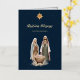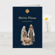 Hermosas tarjetas de Navidades cristianos con una escena con María, José y el niño Jesucristo en el pesebre en Belén.