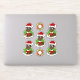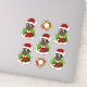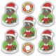 Conjunto de siete pegatinas cortados de vinilo con el ilustracion de un lindo niñito afroamericano sonriente y feliz con gafas, que está vestido con ropa de Navidad y lleva un gorra rojo de Santa Claus, de fondo verde; cinco pegatinas del niño y dos pegatinas con Navidades cortaron la corona; con una plantilla de texto de personalizable para tu nombre o mensaje