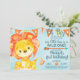 Niño, pequeña invitación de cumpleaños de león.