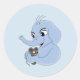 Pegatina con diseño con un ilustracion de un elefante azul con un ratón marrón; ilustrado por Radka Kavalcova / MaxiHarmony
