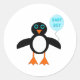 Esta hoja de pegatinas presenta un personalizado lindo de un pingüino azul con ojos azules, un pequeño pico naranja y una panza blanca. El pingüino sostiene un globo azul en polvo. Hay un texto azul pálido en el globo que dice "Niño chico". Este es el regalo perfecto para celebrar a un bebé recién nacido.