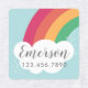Una fantástica etiqueta de hierro para niños con arcos arco iris vibrante con nubes esponjosas blancas y caligrafía Nombre y número de teléfono del niño debajo. Añada esto a la variedad de artículos de vuelta a la escuela para un etiquetado fácil con personalidad y estilo. Ideal para mantas, uniformes, camisetas, chaquetas, toallas y otros objetos personales. Busque la coordinación de accesorios y variaciones de color adicionales por Stacey Meacham.