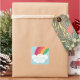Moderno pegatina de cumpleaños para niños, sello para sobres con arcos de colores y nubes esponjosas blancas.