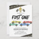 ¿Planificación de primer cumpleaños? Tenemos todo cubierto. Consulta nuestras Invitaciones para el primer cumpleaños del coche de Carreras para niños. Sencillo, elegante y muy divertido. Con un sencillo fondo blanco, y adornado con extravagantes acuarelas, autos, caminos, banderas a cuadros y un trofeo. Nuestra plantilla rápida de una celebración es una brisa para el personalizar, haciendo que su fiesta planee un pedazo de pastel.