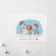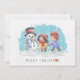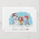 Envíe alegres deseos de vacaciones con esta encantadora tarjeta de Navidades que incluye a dos niños tomándose de la mano junto a un hombre de nieve sonriente en una escena invernal nevada. Ilustrada en un cálido estilo acuático, esta carta festiva capta la magia de la infancia y las tradiciones vacacionales. Perfecto para la familia, amigos y seres queridos.