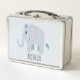 Este bonito diseño de caja de almuerzo azul para niños presenta un elefante azul, con un patrón animal de safari al revés (que incluye un elefante, un león, una jirafa, cebra, cocodrilo y plantas) y tiene un lugar para que le agregues el nombre de sus hijos en una tipografía encantadora. Perfecto para su hijo o niño de vuelta a los suministros escolares. Mira el resto de nuestra colección de otros adorables artículos para niños safari!