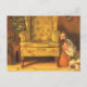Ilustracion de la época victoriana. Imagen de feriado navideño con un niño, un chica y su mascota cachorro. Los hermanos se esconden cerca de la chimenea detrás de una gran silla trasera en el salón esperando a Santa Claus. El hermano y la hermana pusieron una cuerda de lazo para tratar de atrapar a Santa Claus, pero se durmieron antes de que bajara la chimenea.