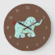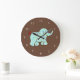 Un lindo elefante bebé decora este reloj de pared. El diseño es de un ilustracion original.