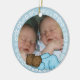 Navidades afroamericanos Twin Boys primer adorno de personalizable con dos bebés durmiendo con traviesas azules, y un diseño suave de copos de nieve. Usted puede fácilmente personalizar este ornamento con su foto de gemelos y añadir su propio texto a la parte posterior. Es grandioso como un regalo de primer Navidad y será un recuerdo en los años venideros.