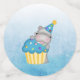 Un hipopótamo lindo con quequitos azules y un gorra fiesta azul y amarillo. Confeti de Guay para rociar alrededor de la tarta o por toda la mesa para que encajen en el tema de tu cumpleaños de hipopótamo.