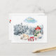 Cálida y caprichosa, esta postal navideña captura la gentil amistad entre un oso y un conejo compartiendo un momento festivo en un bosque cubierto de nieve