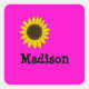 Los niños nombran Pegatinas girasoles —pegatinas de niños personalizados con fondo rosa brillante y girasol.