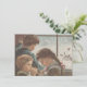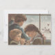 Dos hermanos y su hermana comparten un snack mientras una bandada de pájaros se alimenta fuera de su ventana nevada. Ilustración vintage ideal para una tarjeta de Navidad o saludo invernal. También disponible como descarga digital para uso personal.