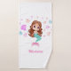 Toalla de baño de sirena con un bonito diseño de sirena de pelo oscuro y un nombre personalizado. Puede personalizarlo con el nombre preferido. Perfecto para todo aquel que ame las sirenas.