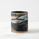 Esta es una taza de café impresa con un auto negro de lujo en un campo de flores blancas. El auto está parado entre el campo de las flores y se ve muy hermoso. La taza está diseñada para ser regalada a los chicos, esposos y a los que aman los autos.