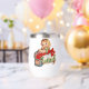Un lindo estilo retro de los años 50, esta niñita está abriendo su caja llena de corazones. De una tarjeta de San Valentín vintage.