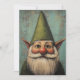 Un encantador Nisse de Navidad escandinavo, que muestra una figura alegre de nariz roja con un sombrero verde alto, ojos expresivos y una barba blanca fluida. Situado en un fondo azul texturizado, esta obra de arte nórdica tradicional encarna el espíritu festivo de la temporada navideña, evocando calidez, folclore y encanto escandinavo atemporal