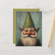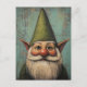 Un encantador Nisse de Navidad escandinavo, que muestra una figura alegre de nariz roja con un sombrero verde alto, ojos expresivos y una barba blanca fluida. Situado sobre un fondo azul texturizado, esta obra de arte nórdica tradicional encarna el espíritu festivo de la temporada navideña, evocando calidez, folclore y encanto escandinavo atemporal