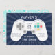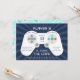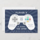 Las invitaciones a una ducha de bebé con temática de jugador especial cuentan con un controlador de video juego con "El jugador 3 se une al juego" mostrado en letras retro, con los detalles de su ducha de bebé en el controlador del juego. Las invitaciones a la ducha de bebé con temática de juego se revierten a un patrón de correspondencias de controladores de videojuegos retro y consolas portátiles.