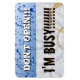 Este popular, lindo y único diseño de imán de lavavajillas de cocina limpia y sucia, ahora hecho en un imán flexible de vinilo de 4"x6", con divertidas burbujas brillantes azules con la palabra "¡No abras!" en texto blanco en una mitad y una servilleta manchada de café es el fondo con la palabra "¡Estoy ocupado!" en texto negro y gruñido en la otra mitad. ¡Una buena idea de regalo para la diosa doméstica de su cocina! La solución divertida al problema de si cargar o vaciar el lavavajillas.