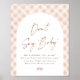 ¡No digas "Bebé"! Una señal de mesa adorable para combinar con nuestras invitaciones de "Un pequeño pastelito de Acción de Gracias Otoño Baby Shower". Este diseño con tema de otoño presenta un fondo de tela de cuadros, un arco boho y un pequeño lazo rosa. Ver la colección vinculada en esta página para artículos coincidentes o visitar nuestra tienda para más diseños de shower de bebé niña.