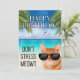 Difunde risa, encanto felino y alegría de cumpleaños con esta tarjeta de saludo. Con una foto de un gato naranja con manteles vistiendo gafas de sol y relajándose en la playa. La manera perfecta de traer alegría al día especial de alguien. El divertido juego de palabras con el tema del gato "no enfatizes a meowt" agrega una capa adicional de entretenimiento, haciendo de esta carta una elección destacada para los que aprecian una buena risa. La tarjeta tiene un lado en blanco que le permite agregar un mensaje personalizado. Es la mezcla perfecta de humor, creatividad y celebración. Ordena el tuyo hoy y prepárate para hacer del cumpleaños de alguien una ocasión inolvidable llena de risas y felicidad.