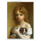 La niña está sacando y sosteniendo a su perro en sus brazos. Dice que no está a la venta y parece que está listo para luchar para conservar a su cachorro.