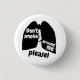 Una silueta negra de pulmones sobre un fondo blanco. En una fuente redonda, la escritura blanca sobre el pulmón izquierdo lee, "no fuma" y el pulmón derecho, "alrededor de mí" y debajo de ella en colores opuestos, "por favor!"