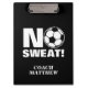 No hay portapapeles deportivo de sudor para entrenador de fútbol. Diseño del humor deportivo con el logo de la bola fría y cita motivacional humorística. Novedad divertida Cumpleaños regalos para entrenador de fútbol, papá, capitán, entrenador, jugador, etc. Añade tu propio nombre y colores personalizados.