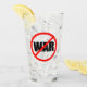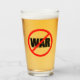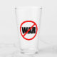 Esta obra de arte muestra la palabra guerra tachada dentro de un círculo.