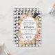 Invite a sus invitados a bajar por el agujero de conejo con esta encantadora invitación de cumpleaños inspirada en Alicia en el País de las Maravillas. Diseñado con una audaz paleta de colores negro y rosa, ofrece una mezcla caprichosa de estampados de tablero de ajedrez, rosas rosas rosas rosas, pastelitos y tetera, el gorra de Mad Hatter y un reloj de bolsillo clásico. Perfecto para la celebración del fiesta de té. Estas invitaciones son parte de una colección de cumpleaños con elementos de coordinación disponibles.