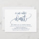 Esta tarjeta de invitación con diseño de caligrafía moderna (no pudimos esperar) es perfecta para la celebración de su boda con fuga / anuncio de fiesta. Agregue sus detalles en fuente / letra azul marino a juego.