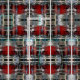 Rollo colorido de los tambores apilados y tejados.