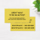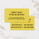 En el frente, dos bloques de texto con portador de espacio decían: "No quería ser activista... entonces ocurrió esta locura y ya no pude quedarme callado". En la parte de atrás: "Ahora hago llamadas casi todos los días" y el titular del espacio se encarga de agregar dos nombres de senadores y números de teléfono que quieres recordar llamar... y ayudar a tus amigos a recordar llamar. Para obtener ayuda con aquellos que ahora piden regularmente que su funcionario electo sepa cómo se siente acerca de la legislación actual. Se ha configurado la plantilla para que pueda cambiar los mensajes y también los números. Escriba el número de su senador, representante, gobernador u otra organización o persona.