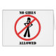 ¡Salven la fecha para el campamento de ciervos o la fiesta del soltero! ¡Todos Los Niños Todos Los Hombres Eventos! ¡Ningún Chica permite Fiestas o eventos! Un Rótulo de prohibición roja con una mujer dentro. El símbolo de no (también conocido como signo de prohibición, sin signo, símbolo de círculo o no universal) es un círculo con una línea diagonal a través de él (que va de arriba a abajo a la derecha), que rodea un pictograma icónico utilizado para mostrar algo no está permitido. El símbolo no suele ser rojo como aquí. No se permiten chicas, no se permiten chicas, hombres graciosos, hombre del metro, fiesta de soltero, fiestas de soltero, fiestas de los niños maduros, cueva de hombre, campamento de verano para todos los niños, campo de caza para niños, Noche de los niños, Noche de los padres, Noche de papá y del hijo, Eventos de padre hijo