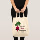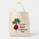 Lleva esta bolsa contigo al mercado de los granjeros y harás muchos amigos. Un divertido juego de palabras, esta pequeña remolacha se asegurará de que se lo piense dos veces antes de comprar esas verduras de fuera del país. Para el jardinero de verduras y la nuez de la salud, este diseño es un gran regalo. Diseño original y obra de Rebecca de Night Owl's Menagerie, 2010.