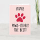 Celebra la alegría de la compañía con la tarjeta "¡Eres absolutamente el mejor!". La parte delantera presenta una adorable huella de pata junto al juguetón mensaje, lo que la convierte en la tarjeta perfecta para un amante de las mascotas o cualquier persona que llene tu vida de diversión y risas.