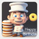 La foto es un feliz panadero 3D animado con una pila de deliciosas nueces heladas