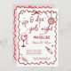 Organice una noche de chicas elegante y divertida con esta invitación de tarjeta de puntuación de cata de vino para una noche de chicas en la bodega. Diseñada para amantes del vino, presenta un diseño limpio y moderno con un acento rojo atrevido, lo que la hace perfecta para fiestas de cumpleaños, noches de despedida de soltera o reuniones informales en el viñedo. La parte delantera invita a sus invitados al evento, mientras que la parte trasera proporciona una tarjeta de puntuación de cata de vino para que todos puedan calificar y registrar sus vinos favoritos durante toda la noche.