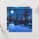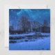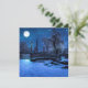 Parque de nieve con un hermoso puente sobre un pequeño estanque, luz de la calle y cubierto de árboles de nieve en invierno por la noche. Hermosa noche de invierno.