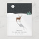 Comparte el ambiente de una silenciosa noche blanca de Navidad con tus amigos y familiares con esta tarjeta postal dibujada a mano de 4,25" x 5,6" con un reno parado solo en una pradera cubierta de nieve con la luz de la luna iluminando en una clara noche estrellada.