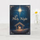 Celebre la maravilla de la Navidad con esta tarjeta bellamente diseñada que presenta una radiante escena de la natividad bajo un cielo nocturno estrellado. Una brillante estrella guía brilla sobre el pesebre, donde María y José se arrodillan junto al niño recién nacido. Bordes ornamentados y detalles elegantes enmarcan la obra de arte, creando un recuerdo atemporal que honra el verdadero significado de la temporada. Perfecta para compartir fe, alegría y bendiciones sinceras con familiares y amigos.