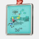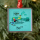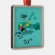Parece que va a ser un momento divertido con esta noche de Chicas retro kitschy en el adorno de Navidad. El estilo de los años 60, de diseño minimalista, cuenta con dos mujeres con cócteles rosas en un moderno salón de estilo acuático y turquesa. Estas señoras saben cómo relajarse. La belleza del cabello cuervo en el coquetón, vestido verde, está tumbado en el sofá atómico. Su compañero rubio está sentado en una alfombra de estampado de cebra, usando un top rojo y pantalones ajustados y negros. El reproductor de discos de vinilo vintage y las luces de linterna de papel ponen el ánimo. Sobre el sofá moderno cuelga una estampada de arte enmarcada, de época espacial. Personalice con el año.