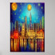 Noche en la ciudad junto al lago | Poster de arte